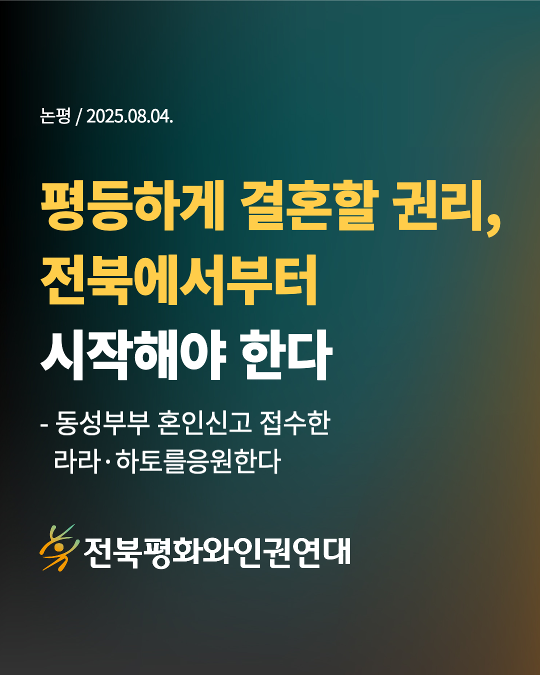[논평] 평등하게 결혼할 권리, 전북에서부터 시작해야 한다